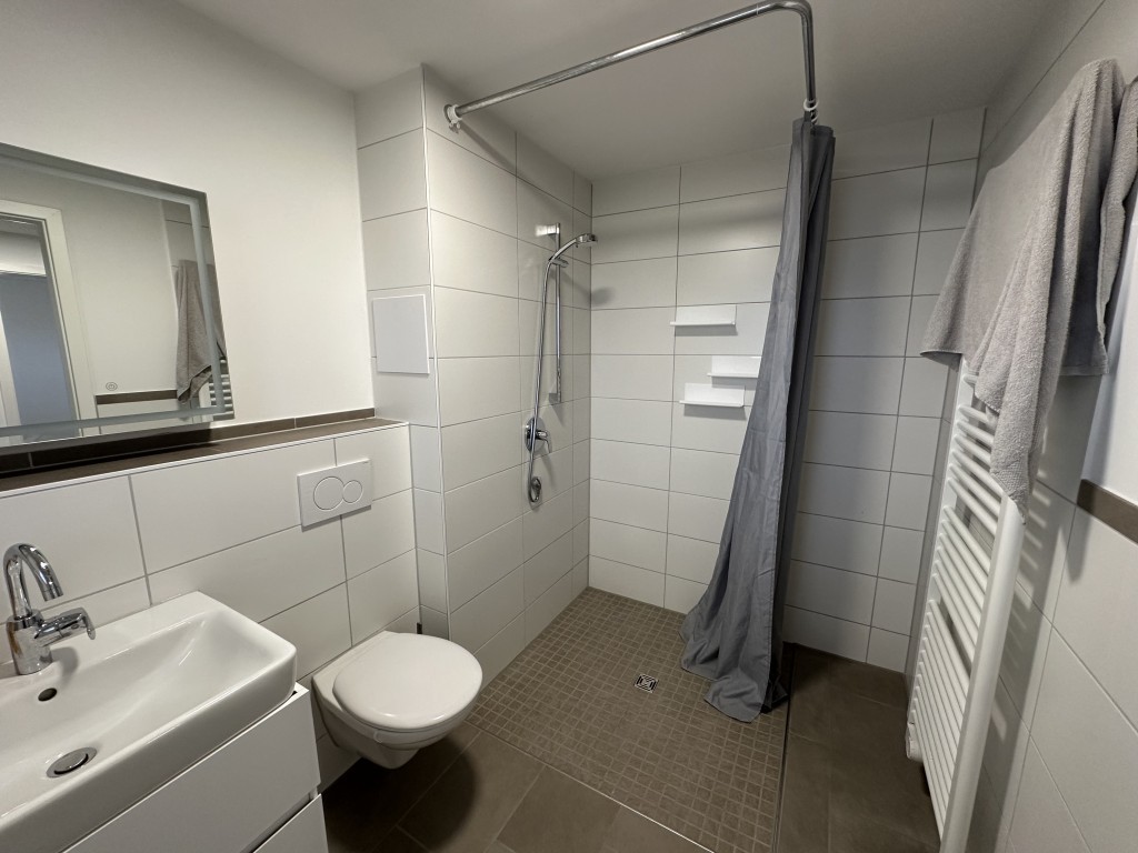 Bad mit bodenebener Dusche und WC