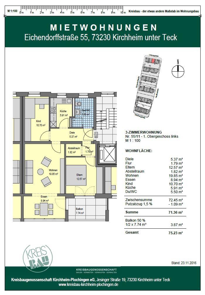 Die Wohnung befindet sich in der Eichendorffstraße 55 in Kirchheim.