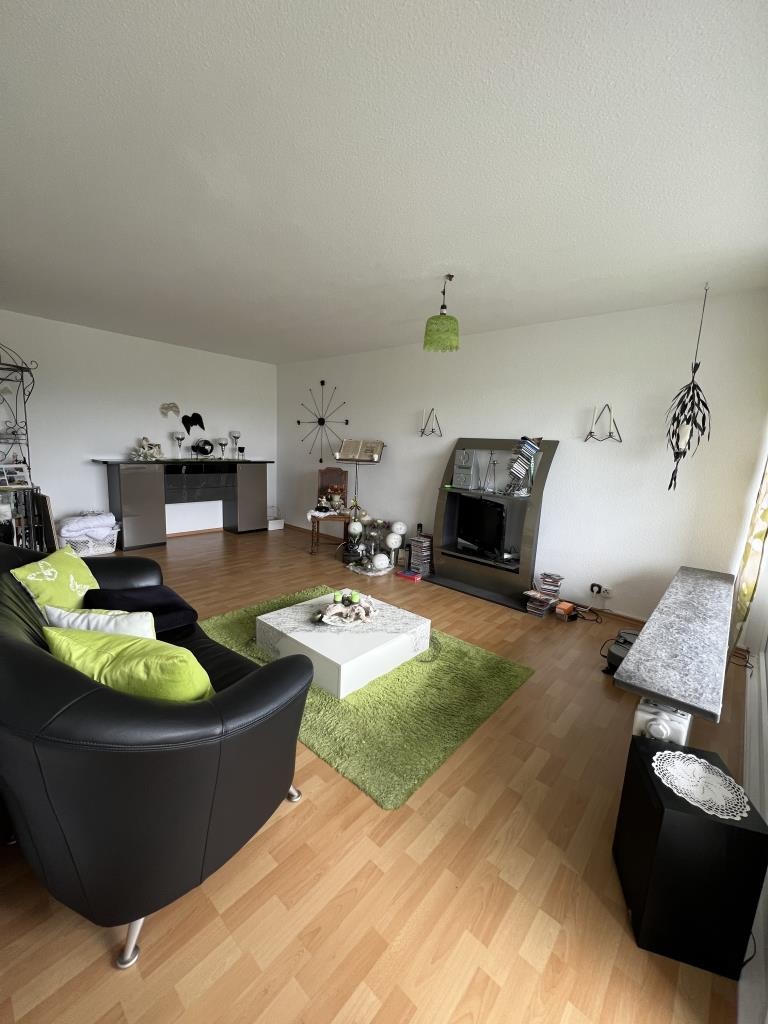 Das helle und großzügige Wohnzimmer überzeugt durch eine freundliche Wohnatmosphäre und einen schönen Ausblick. Von hier aus gelangen Sie auf die sonnige Loggia, die zu entspannten Stunden mit herrlichem Blick ins Grüne einlädt.